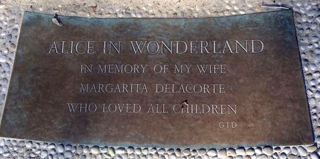 ג'ורג' דלקורט (George T. Delacorte 1894 – 1991) היה מו"ל אמריקאי יליד ניו יורק. דלקורט היה איש אמיד ופילנטרופ שתרם במשך השנים כספים רבים למטרות שונות. הוא תרם לאוניברסיטת קולומביה, הקים שעון מוסיקלי על יד גן החיות של הסנטרל פארק וכן תרם כספים להקמת התאטרון הפתוח במקום. עד היום התאטרון הפתוח בפארק נושא את שמו: תאטרון דלקורט. אשתו הראשונה של דלקורט, מרגריטה, אהבה מאוד את סיפורה של אליס והרבתה לספר אותו לששת ילדיהם. לאחר שמרגריטה דלקורט הלכה לעולמה, החליט ג'ורג' להנציח את זכרה של אשתו האהובה באמצעות פסל בדמותה של אליס, להנאתם של ילדי ניו יורק.