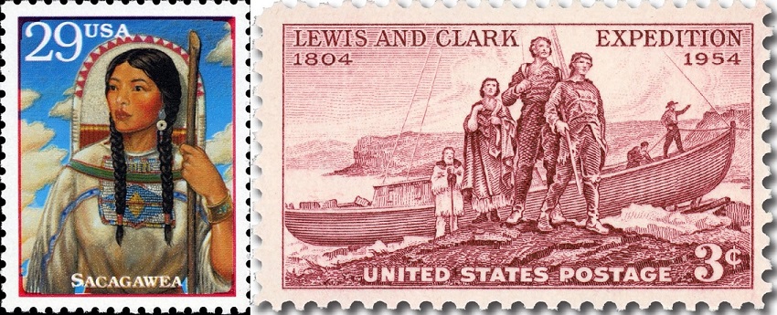 בשנת 1954 במלאת 150 שנה לצאת המשלחת, הונצחו דמויותיהם של לואיס וקלארק על בול, ואילו סקאג'אווה זכתה לכבוד הזה בשנת 1994 כחלק מסדרת בולים הנושאת את השם Legends of the West.